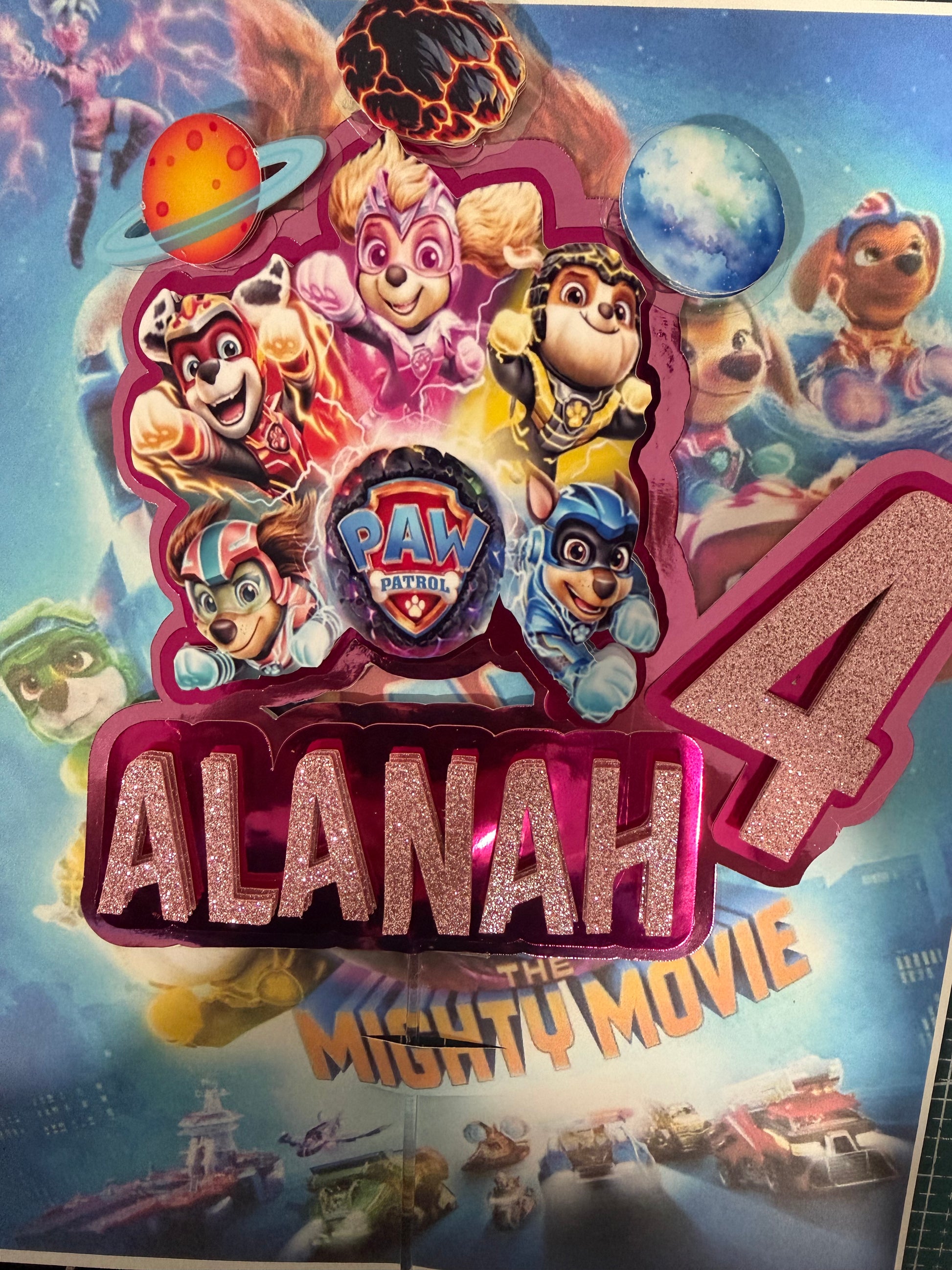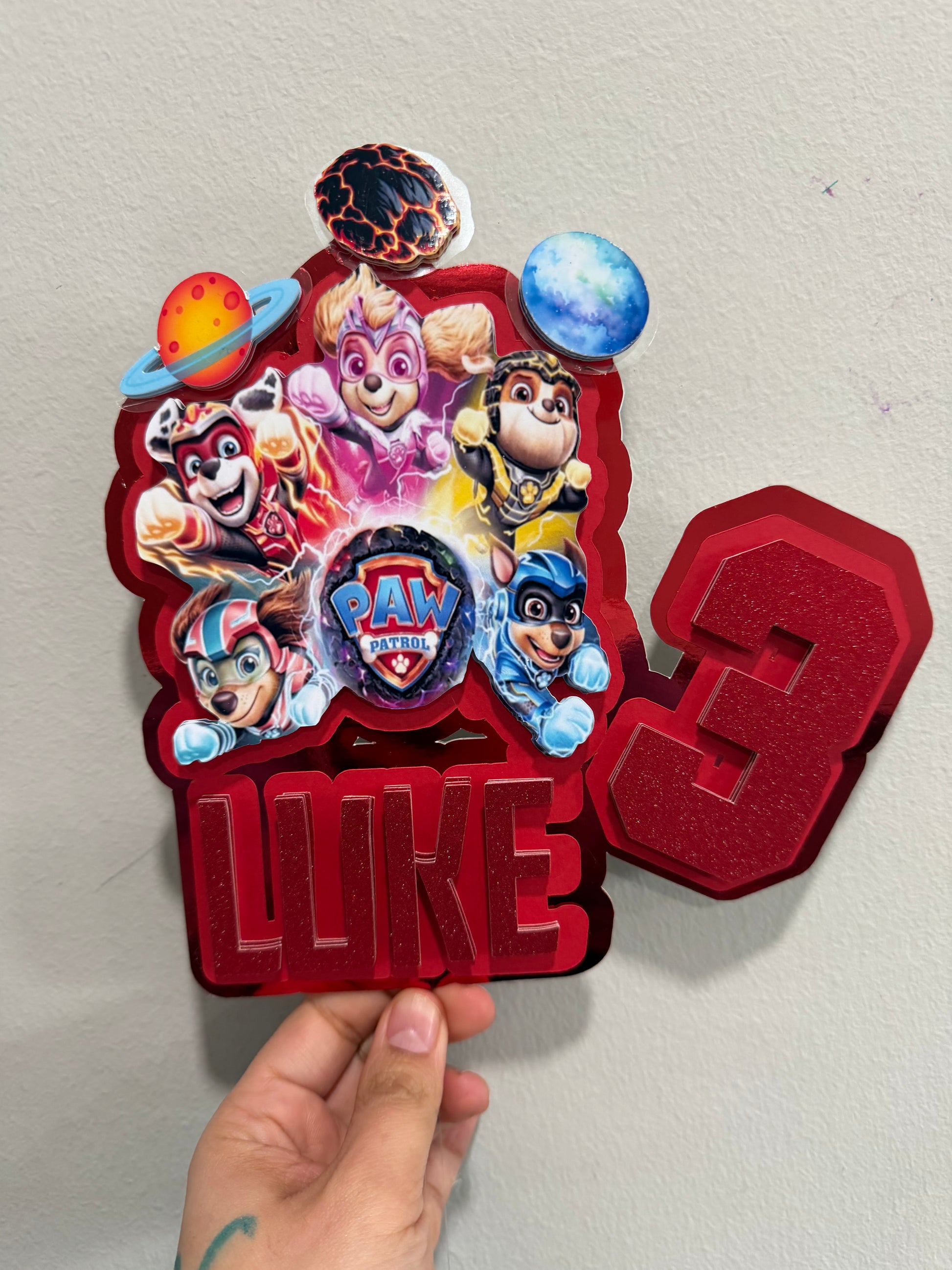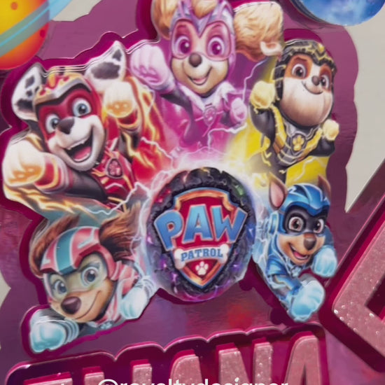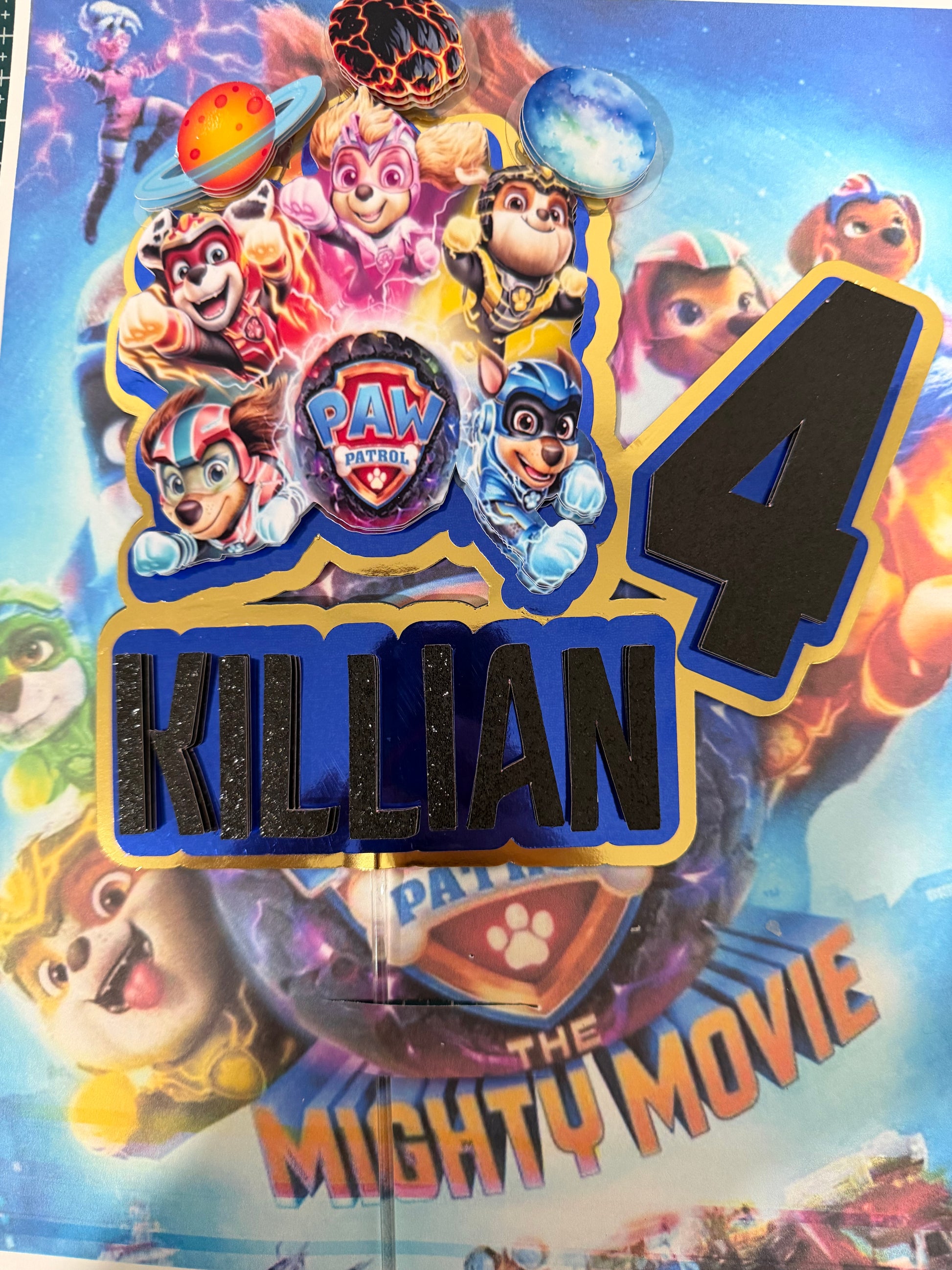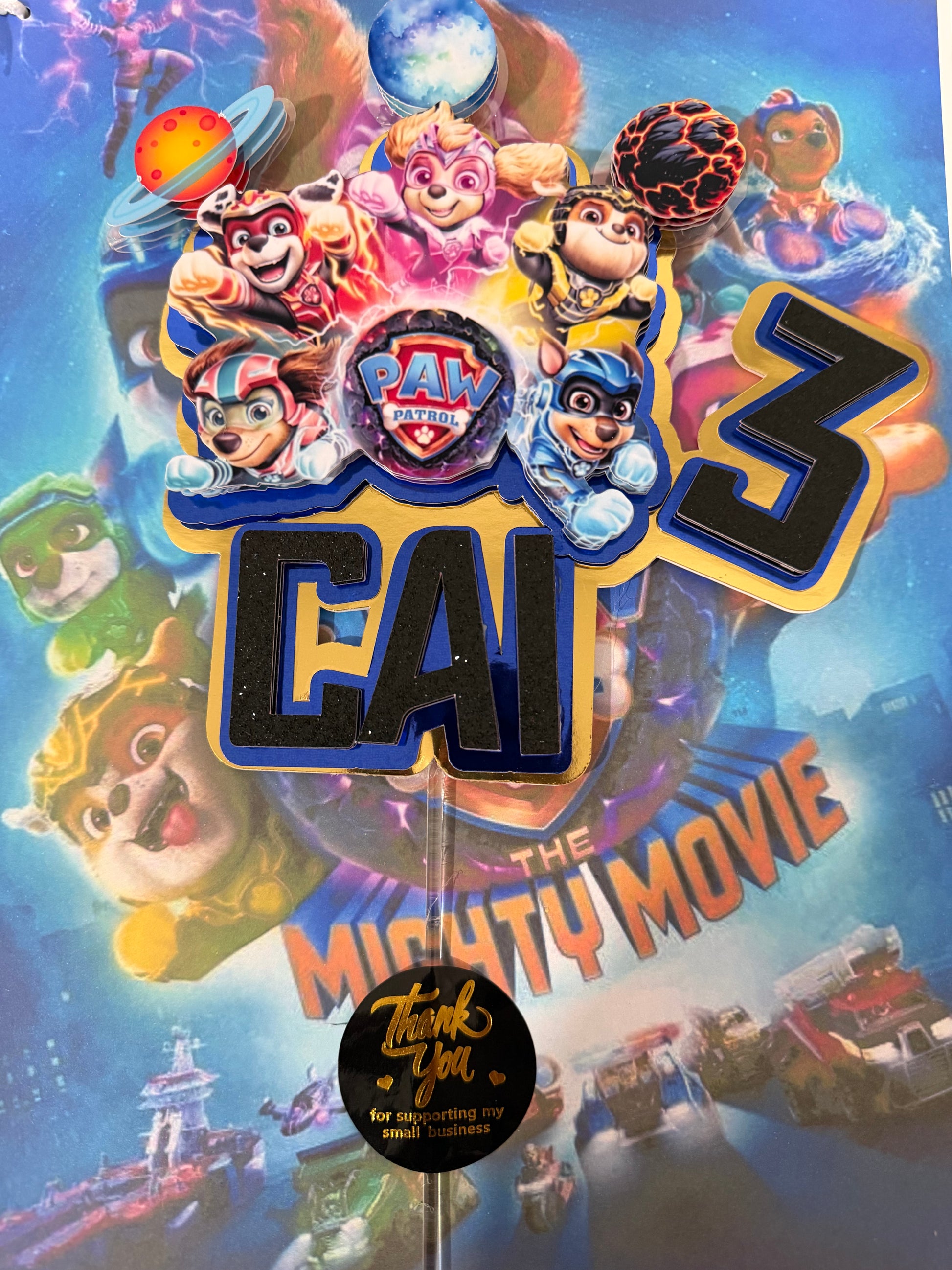 Custom Paw Patrol Cake Topper, 3D Mighty Pups Cake Decoration, Personalized Kids Birthday Party Decor, Paw Patrol Movie Theme.